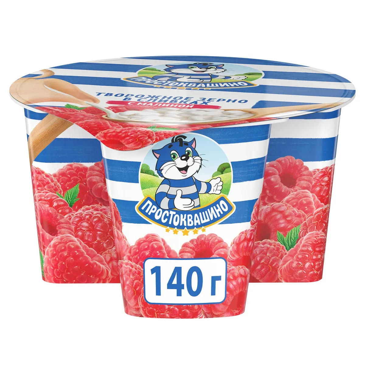 Продукт твор зерненый Простоквашино малина 5% 140г Россия БЗМЖ