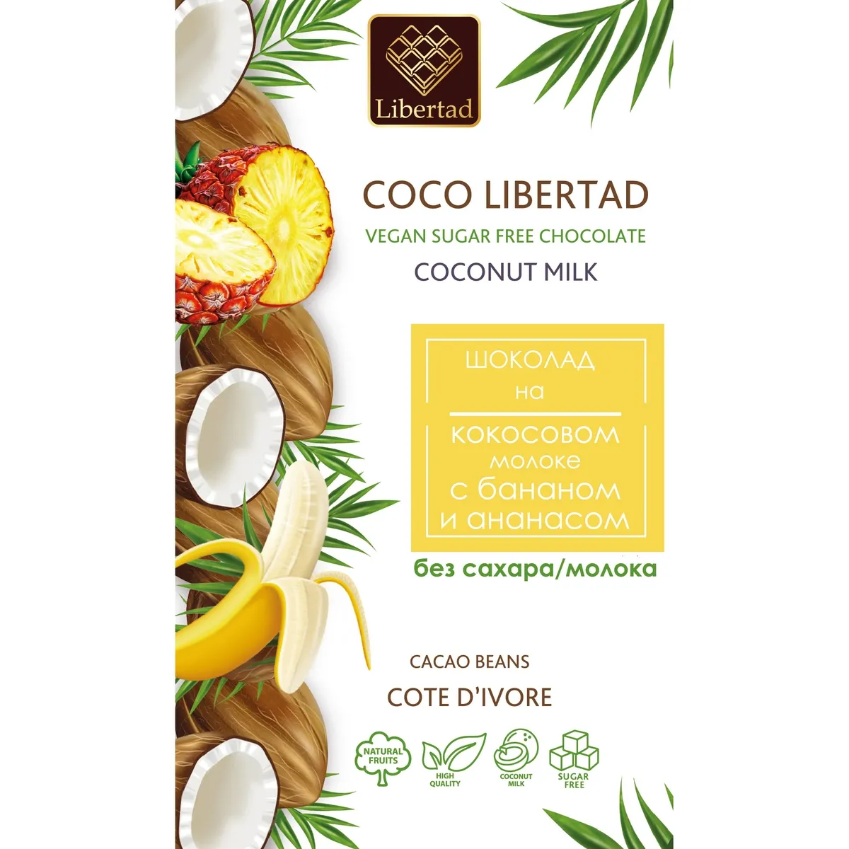 Шоколад Coco Libertad на кокос молоке с бананом и ананасом 40г Россия