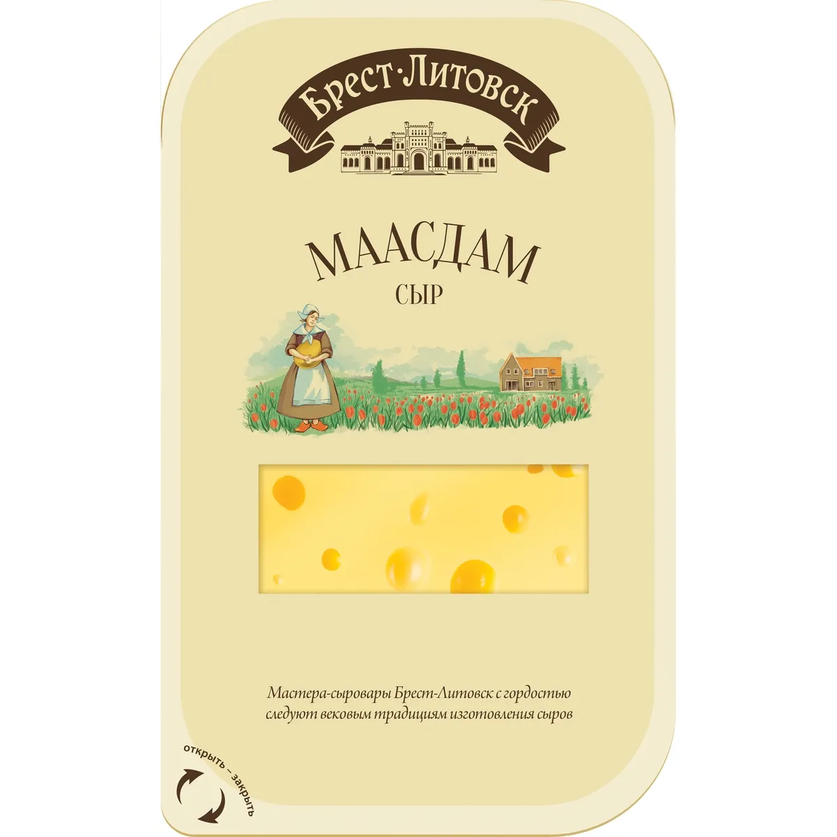 Сыр Маасдам Брест-литовский 45% 130г нарезка Беларусь БЗМЖ