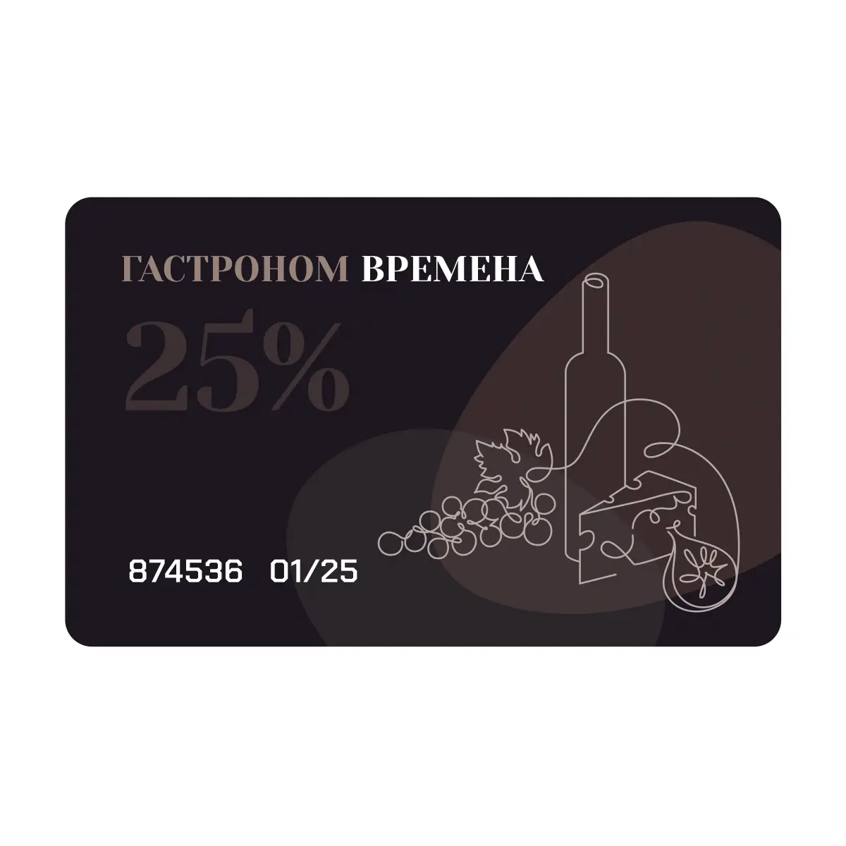 Специально для постоянных покупателей в продаже дисконтные карты «Гастроном Времена» с 15% и 25% скидкой на 12 месяцев. Дисконтные карты действуют в «Гастрономе Времена» и в интернет-магазине gastrovremena.ru Подробнее о дисконтных картах