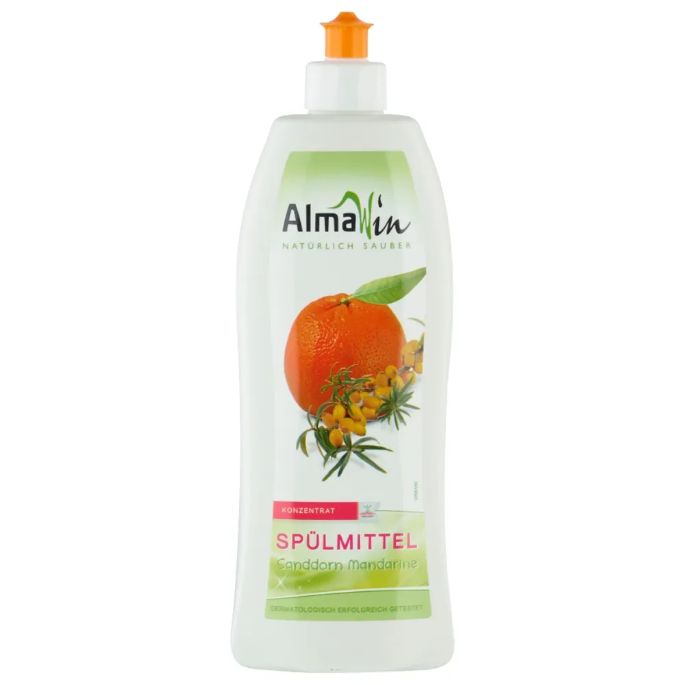 жидкое средство для мытья посуды Almawin отлично удаляет остатки пищевых загрязнений с посуды; жидкость для мытья посуды не вызывает контактной аллергической реакции; средства для посуды Almawin рекомендованы дерматологами содержит эфирное масло мандарина и экстракт облепихи; экономично в использовании; не наносит вред коже рук