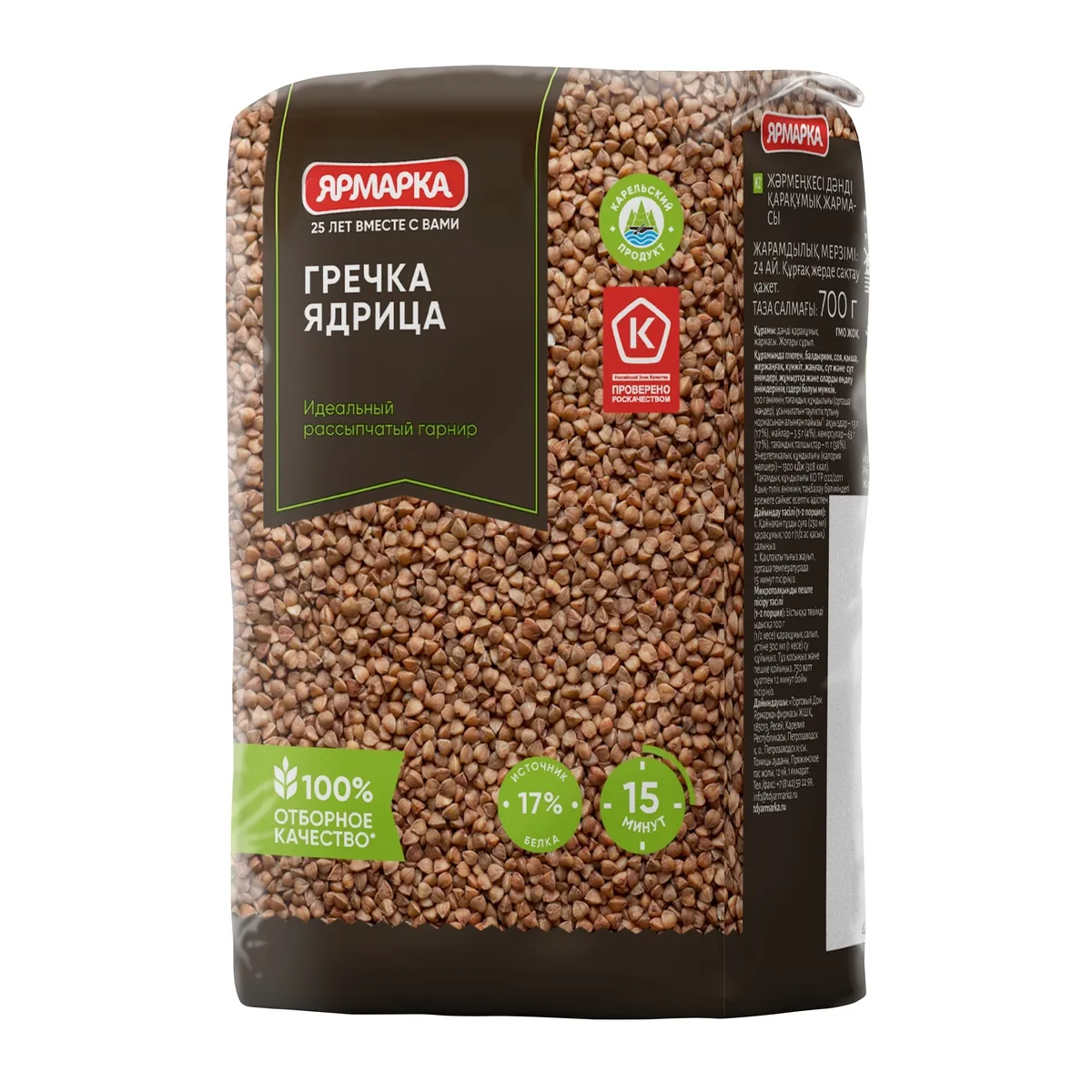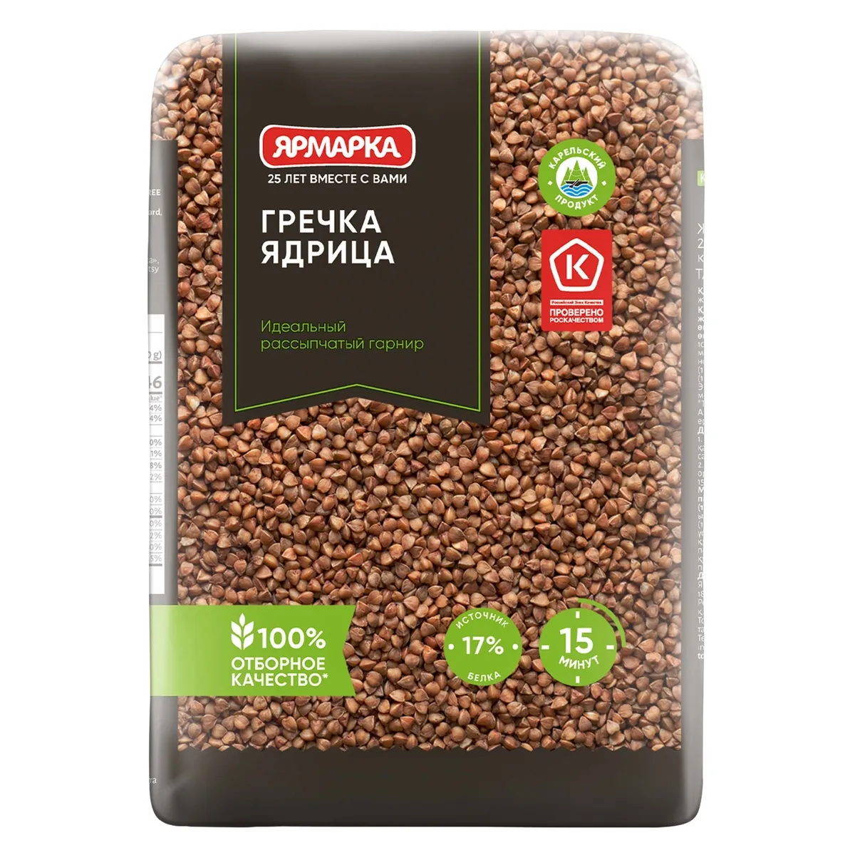 Ученые считают, что гречневая крупа родом из Индии и Непала. Именно там стали выращивать этот злак четыре тысячи лет назад. В Россию она попала из Греции, поэтому и дали ей такое название. На производстве зерно гречихи подвергают тепловой обработке паром, очищают от оболочки. Специальное оборудование Sortex позволяет сортировать зернышки по размеру, удаляя продел и сор. Поэтому греча ядрица от Ярмарки славится хорошим качеством. Полезные свойства гречневой крупы давно известны, это одна из самых полезных круп. Она богата белком, витаминами группы В, железом и фосфором, цинком и магнием. В ней есть жиры, но особые, полиненасыщенные, а также пищевые волокна. Они помогают организму бороться с лишним весом, снижают уровень холестерина. Поэтому гречневая диета так популярна среди желающих похудеть. В грече содержится рутин - витамин Р, который укрепляет стенки кровеносных сосудов, непосредственно участвует в окислительно-восстановительных процессах). Употребление гречи рекомендуется при тяжелых физических нагрузках, при нарушении обмена веществ, для укрепления сердечно-сосудистой системы, для профилактики атеросклероза. Питательная ценность гречневой крупы такова, что ее сравнивают с мясом и бобовыми. В ней много медленных углеводов, которые легко усваиваются организмом и дают ощущение сытости надолго. Гречу рекомендуют включать в рацион диабетикам и гипертоникам. Она полезна всем без исключения.