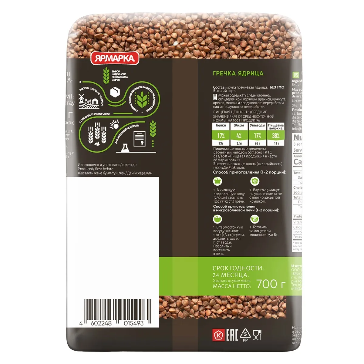 Крупа гречневая ядрица. Может содержать следы глютена, сельдерея, сои, горчицы, арахиса, кунжута, орехов, молока и продуктов его переработки, яиц и продуктов их переработки. Не содержит ГМО.