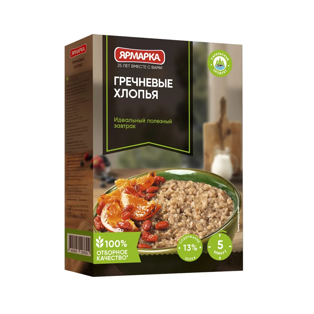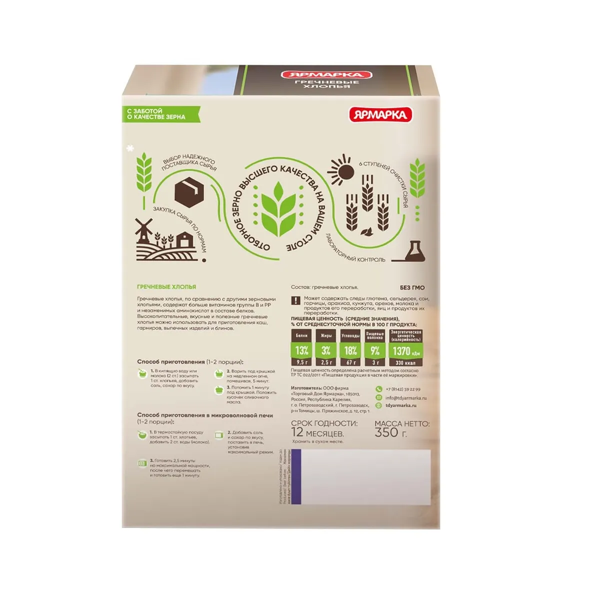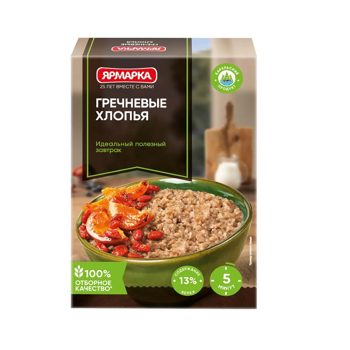 Хлопья гречневые. Может содержать следы глютена, сельдерея, сои, горчицы, арахиса, кунжута, орехов, молока и продуктов его переработки, яиц и продуктов их переработки. Не содержит ГМО.
