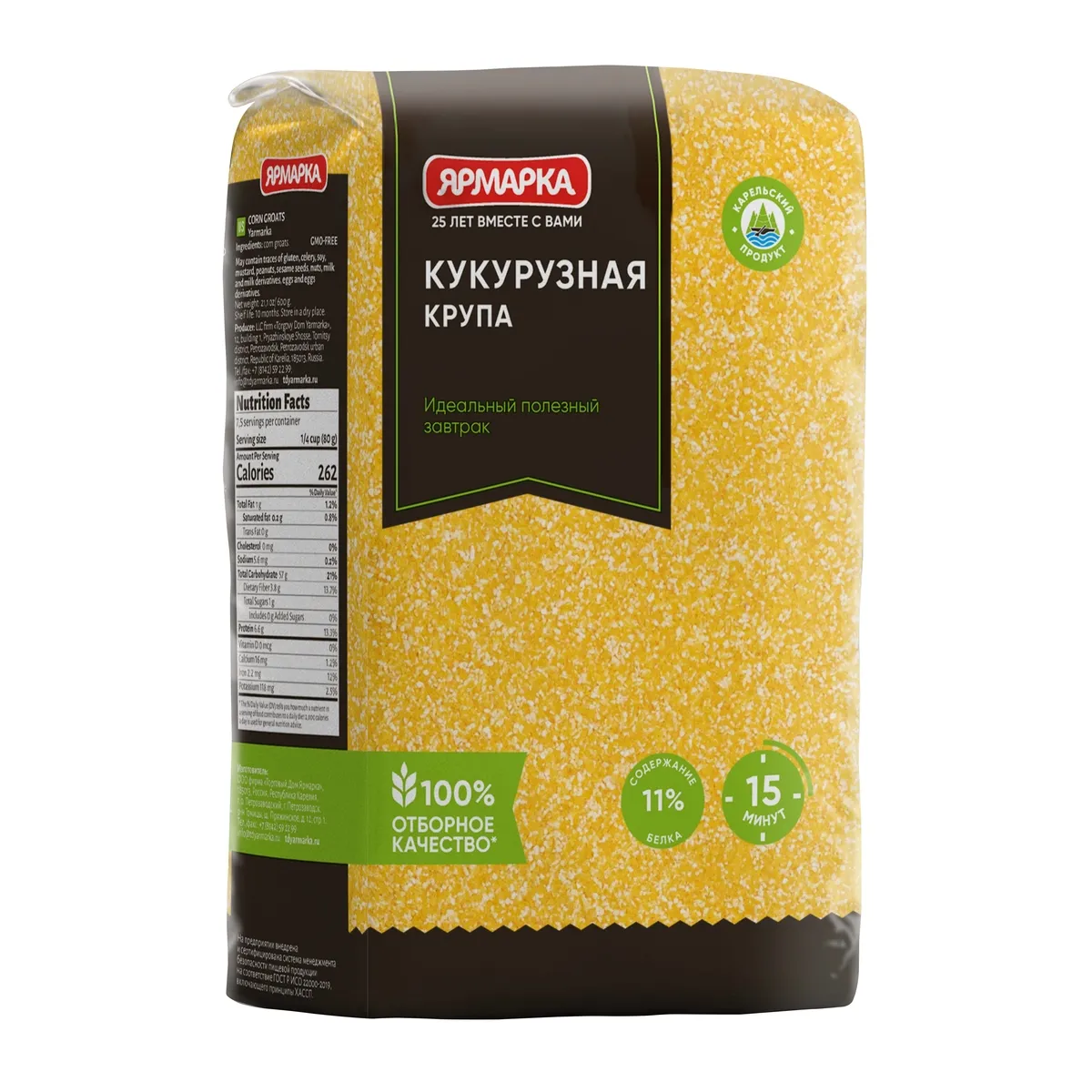Кукурузная крупа. Может содержать следы глютена, сельдерея, сои, горчицы, арахиса, кунжута, орехов, молока и продуктов его переработки, яиц и продуктов их переработки. Не содержит ГМО.