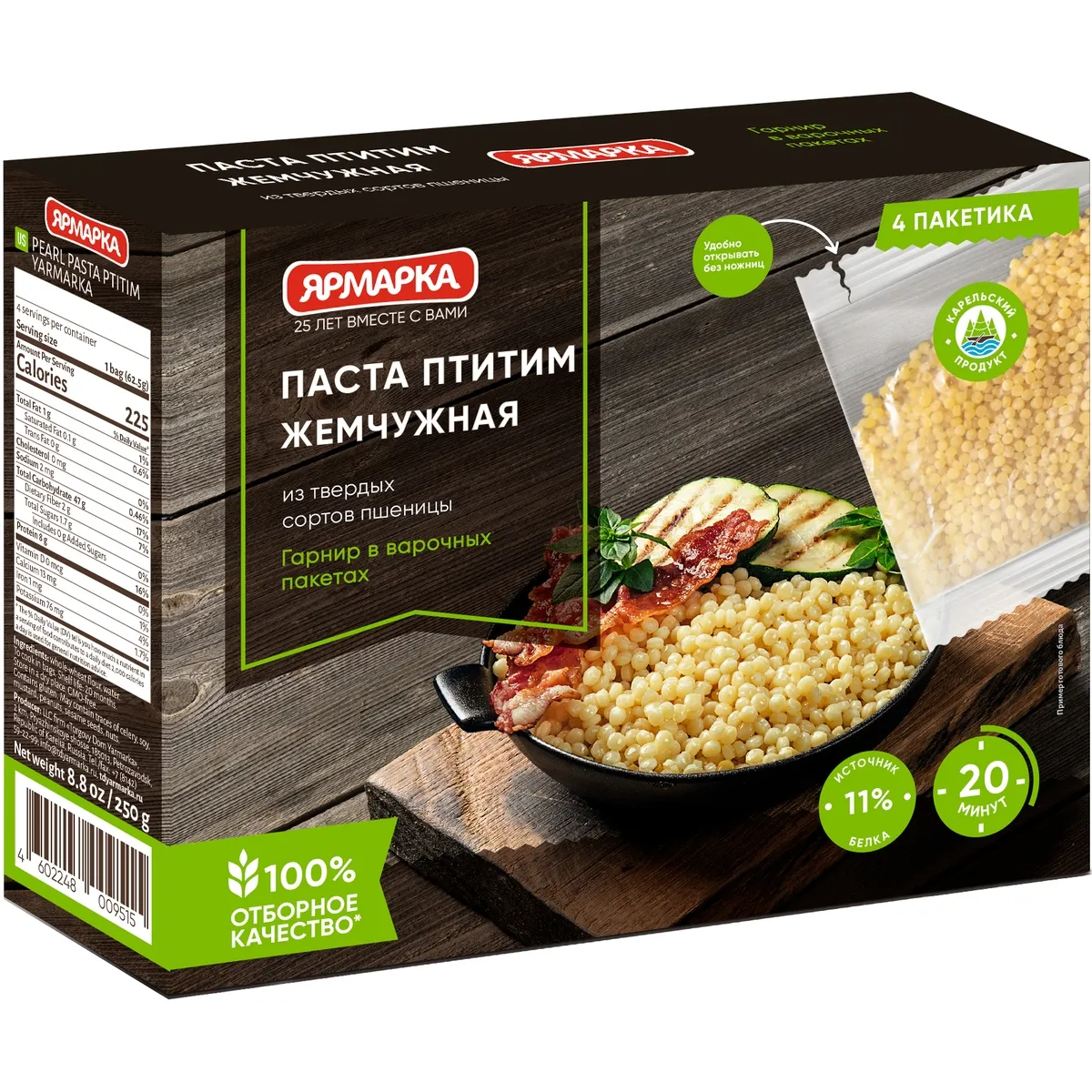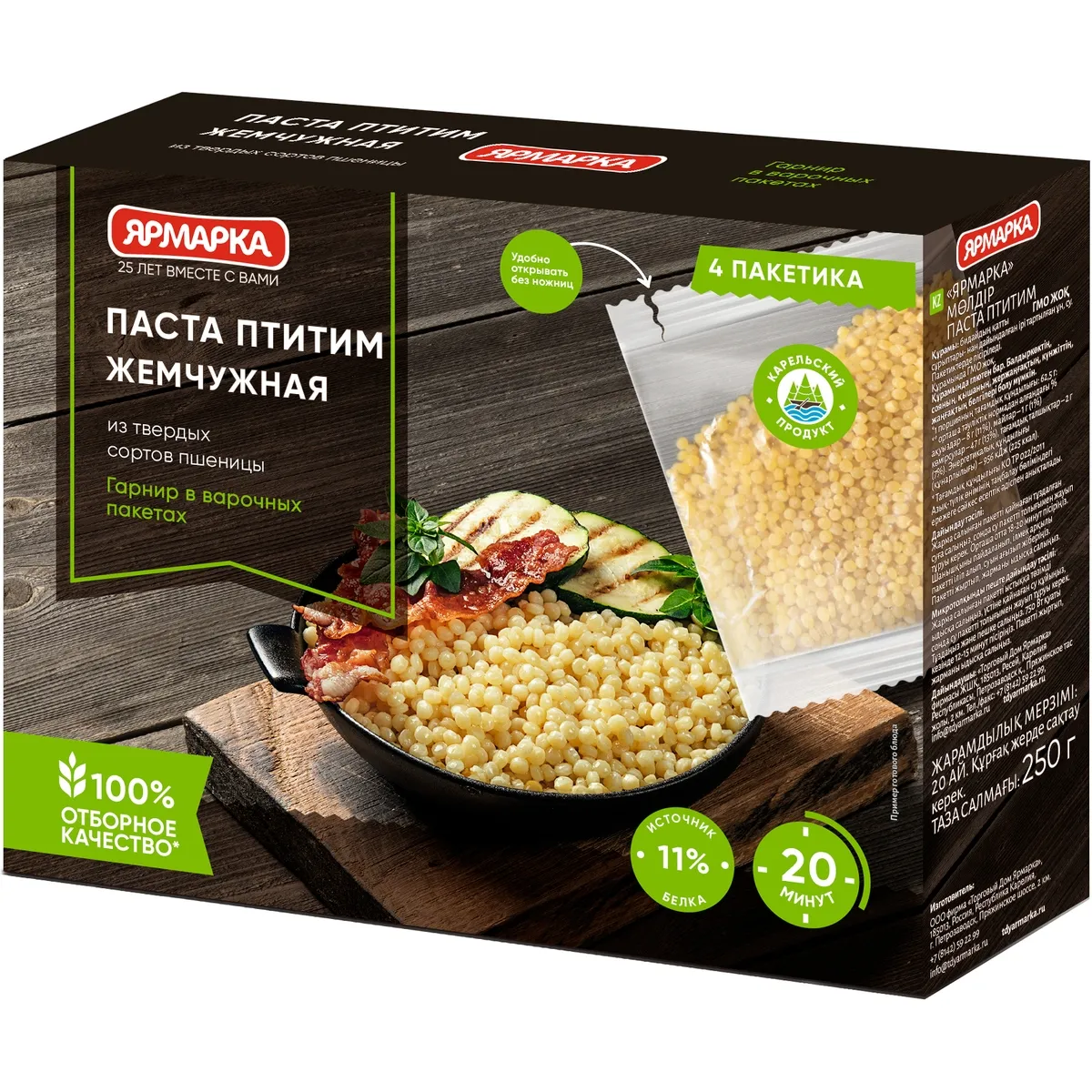 Паста Птитим «Ярмарка Отборная» — один из оригинальных кулинарных вкладов Израиля. Также как и привычный нам кускус, птитим производят из твердых сортов пшеницы, только изготавливают его по макаронной технологии. Птитим сохраняет форму, остается рассыпчатым, не слипается, поэтому из него легко и просто приготовить гарнир, а можно добавить в суп или салат. Он украсит любое горячее или холодное блюдо и придаст ему особый оригинальный вкус.