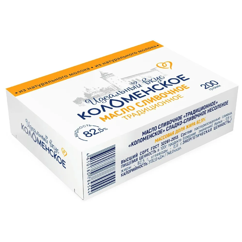 Масло Коломенское сливочное несоленое в/с 82,5% 200г Россия БЗМЖ