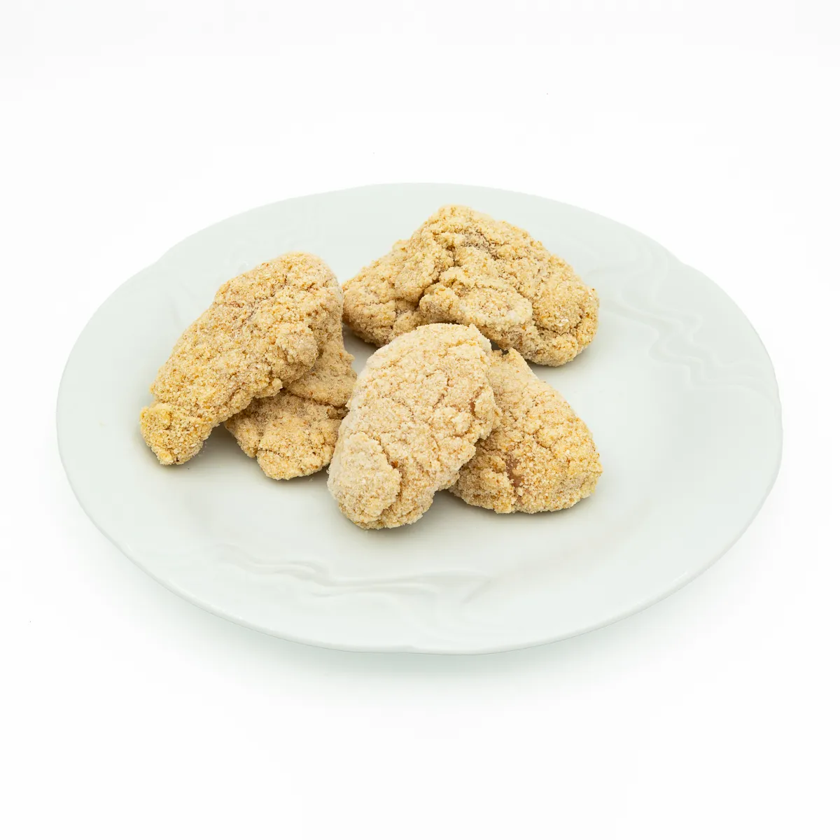 Состав: цыплята фермер, соль, прец черный молотый, мука, яйцо, молоко, сливки, сухари панировочные