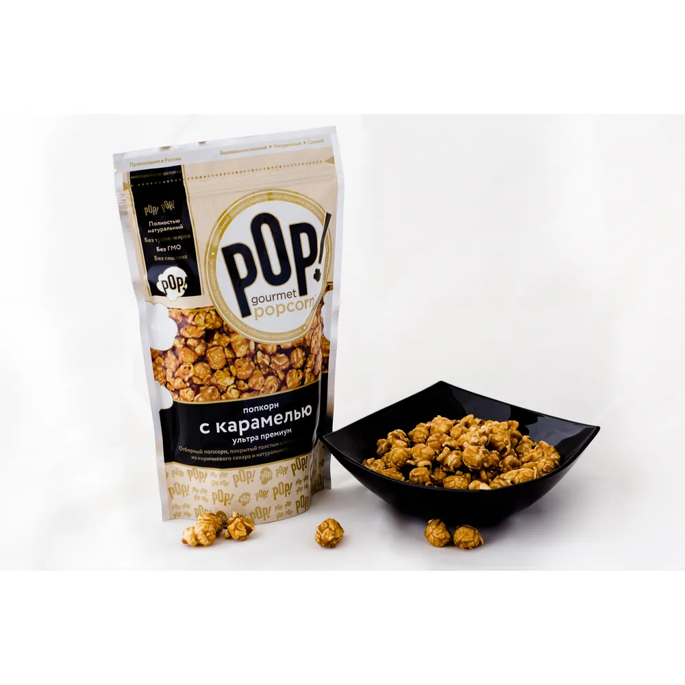 Отборный попкорн, покрытый толстым слоем хрустящей карамели из коричневого сахара и натурального сливочного масла.