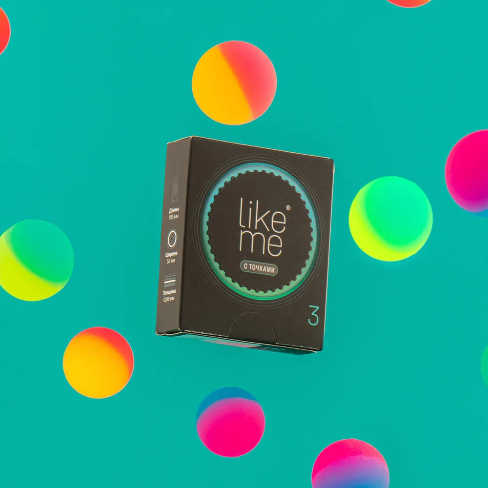 Презервативы like me® с точками изготовлены из натурального высококачественного латекса в силиконой смазке. Маленькие выпуклости усиливают сексуальные ощущения партнеров. В составе презервативов like me® только вода и антиаллергенный латекс. Вся продукция like me® соответствуют стандартам безопасности, проходит машинную проверку на производстве, имеет соответсвующее регистрационное удостоверение.