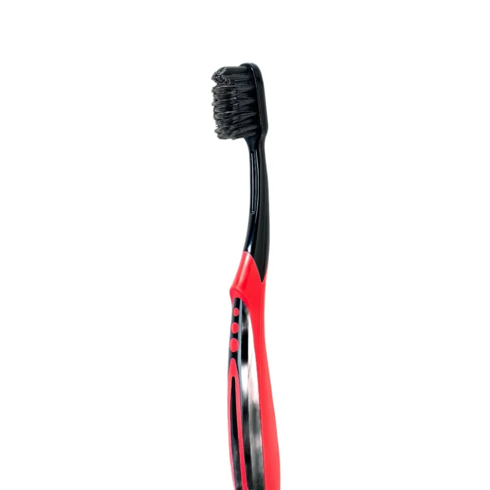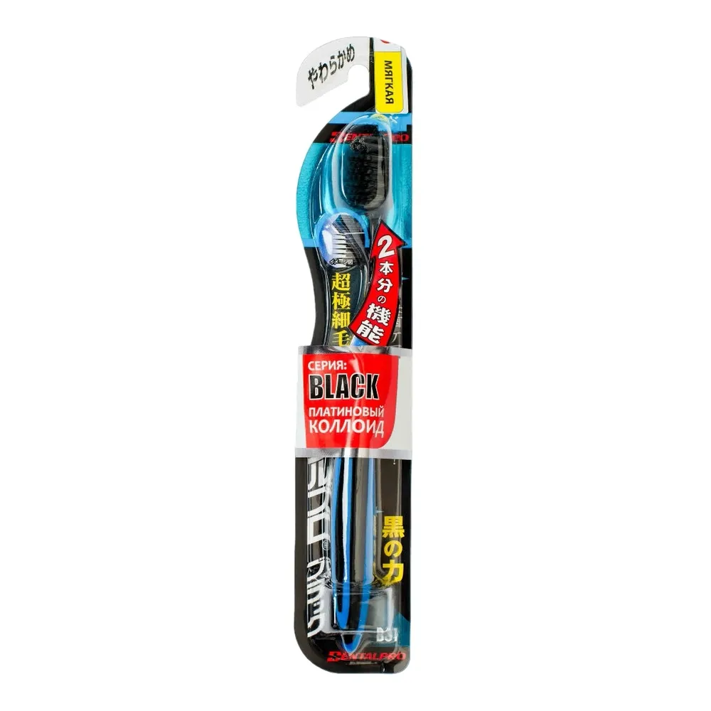 Японская зубная щетка DentalPro Black Ultra Slim Plus с ультратонкими черными щетинками с добавлением платиновой коллоидной керамики (PCC) отлично очищает труднодоступные (молярные) зубы и оказывает профилактику возникновения пародонтоза. Ультратонкие заостренные щетинки аккуратно проникают между зубами и удаляют зубной налет, не повреждая десны. В мягкой зубной щетке DentalPro 1000 щетинок. Уникальная разработка DentalPro PCC - (платиновая коллоидная керамика). Эта технология позволяет встроить платину в структуру щетины, что делает ее на 25% прочнее в сравнении с обычными нейлоновыми щетками. Кроме того, ионы платины обеспечивают антибактериальный эффект: можно чистить зубы даже без применения зубных паст. Преимущества зубной щетки: • Очистка с технологией PCC в десять раз эффективнее устраняет зубной налет и камень • Высокая плотность щетинок в верхней части позволяет удалять загрязнения с дальних зубов и труднодоступных мест • Эффективная чистка пародонтального кармана (щель между зубом и десной) благодаря ультратонким щетинкам • Эргономичный дизайн обеспечивает маневренность и комфорт в использовании Разработка зубных щеток DentalPro ведется совместно с ведущими мировыми стоматологами. В целях повышения безопасности продукта проводятся глубокие исследования на определение идеальной̆ жесткости щетки, баланса силы трения и других стоматологических параметров.