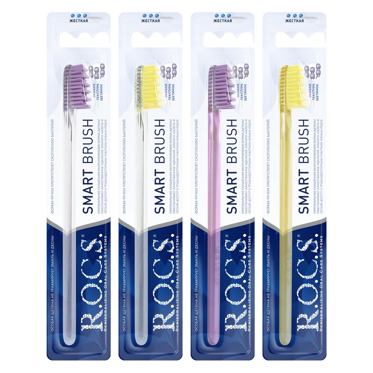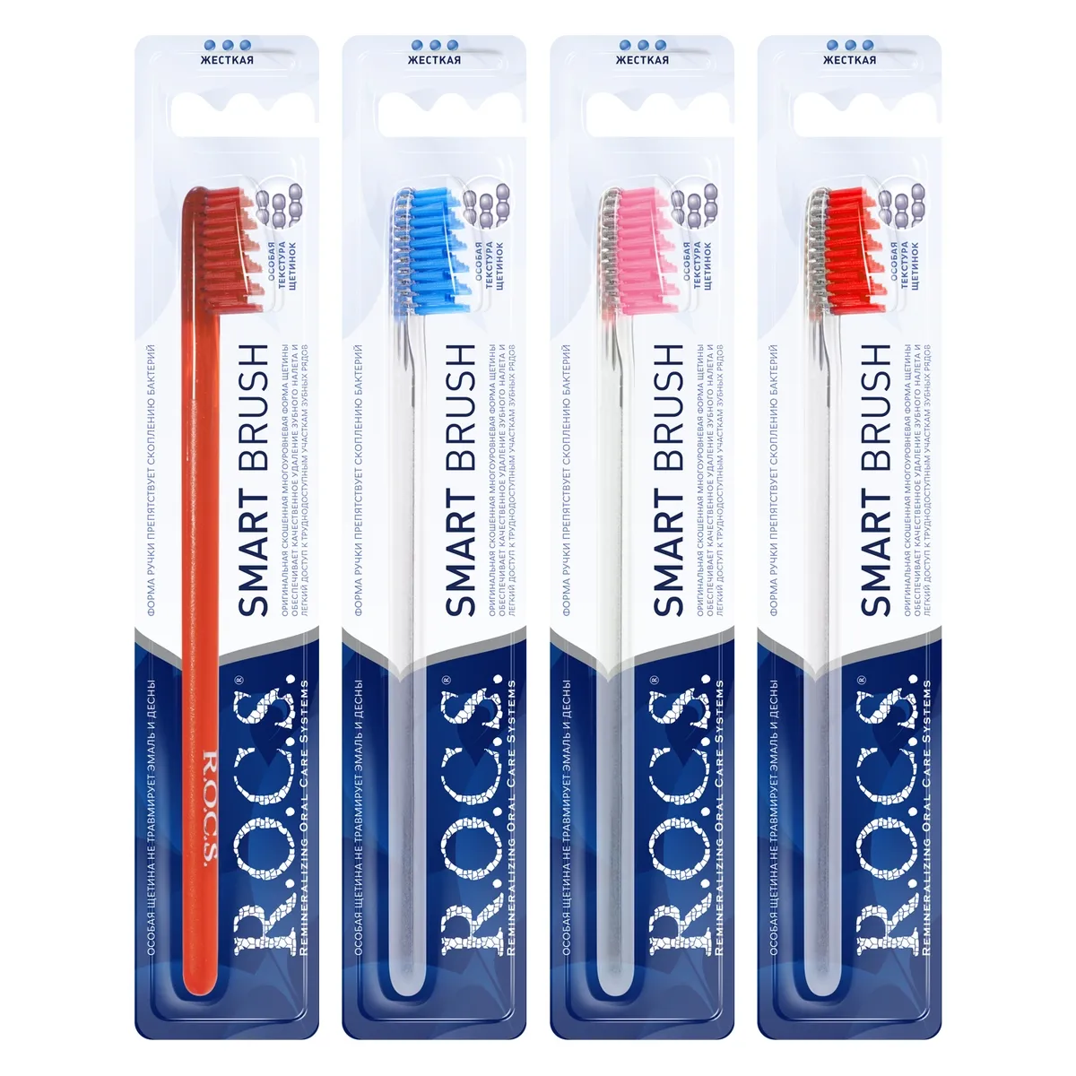 Необычная зубная щетка R.O.C.S. «Модельная» (жесткая) отличается разноуровневой подстрижкой щетины, скошенной к концу изделия. Щетка качественно удаляет зубной налет, не травмируя как мягкие, так и твердые ткани ротовой полости.