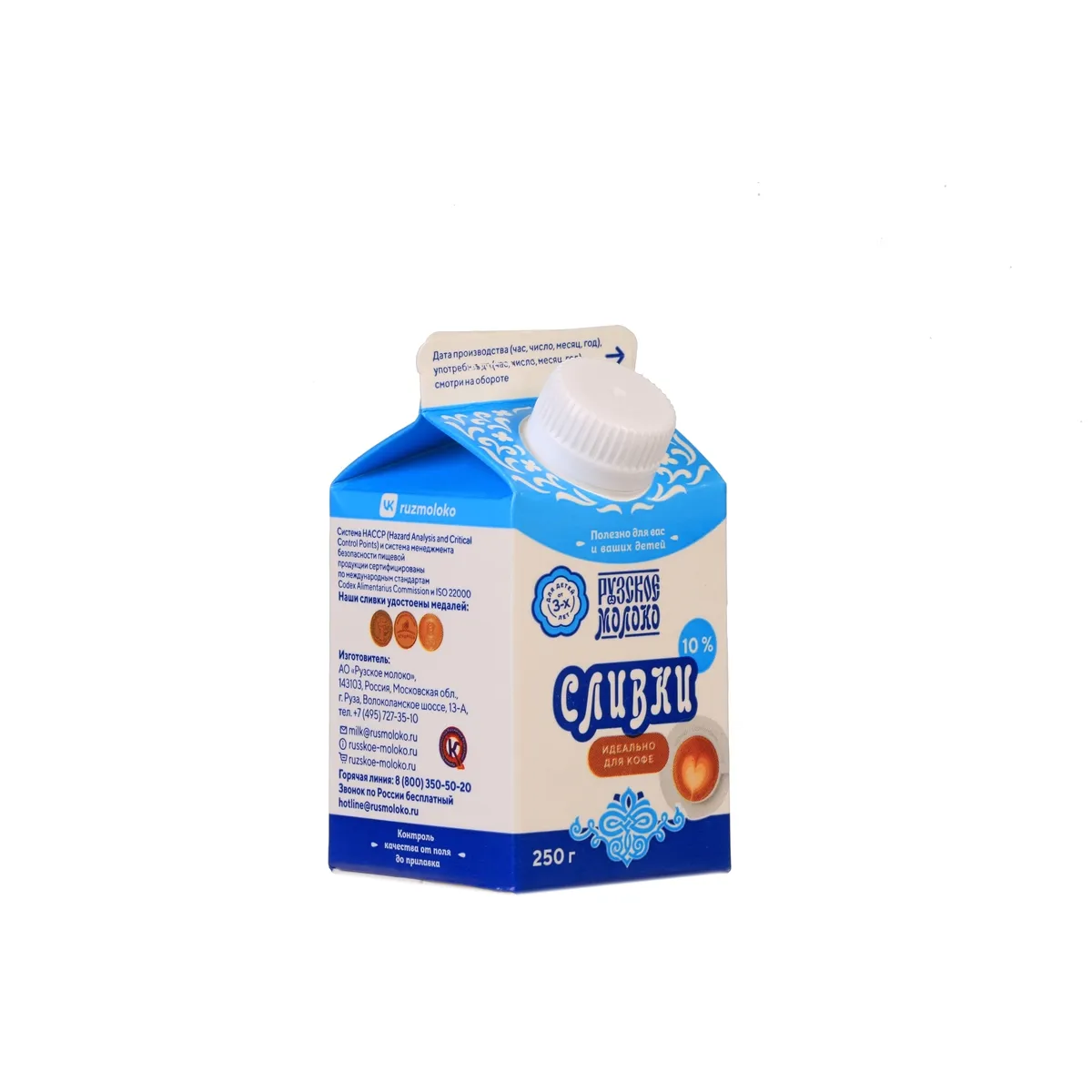Биологическая ценность сливок состоит в том, что они содержат повышенное число фосфолипидов - строительного материала для клеток организма. Они регулируют и нормализуют обмен жиров, предупреждают атеросклероз. Рузские сливки сохраняют все эти полезные свойства за счет бережной пастеризации. Наши десятипроцентные сливки приготовляются из обезжиренного молока и сепарированных жирных сливок, которые смешиваются в нужной пропорции. Рекомендуем употреблять сливки в количестве не более стакана в день. Добавляйте их в кофе, готовьте на их основе крем-супы и соусы.