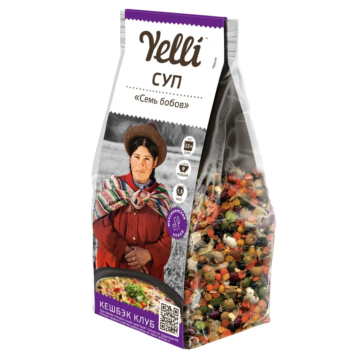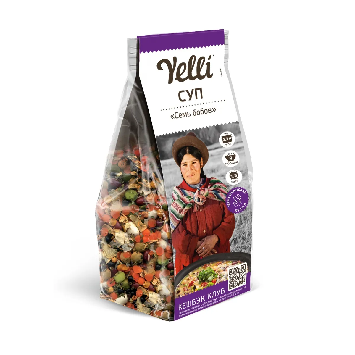 Фасоль белая, фасоль красная, горох зеленый колотый, чечевица красная (К – колотая, Ц – целая – смотри после даты изготовления), чечевица зеленая целая, овощи сушеные (лук репчатый, томаты, баклажаны, чеснок), чечевица желтая колотая, горох желтый колотый, специи молотые и травы сушеные (петрушка, куркума, кумин, базилик, перец черный). Может содержать следы глютена, сельдерея, сои, горчицы, арахиса, кунжута, орехов, молока и продуктов его переработки, яиц и продуктов их переработки. Не содержит ГМО.