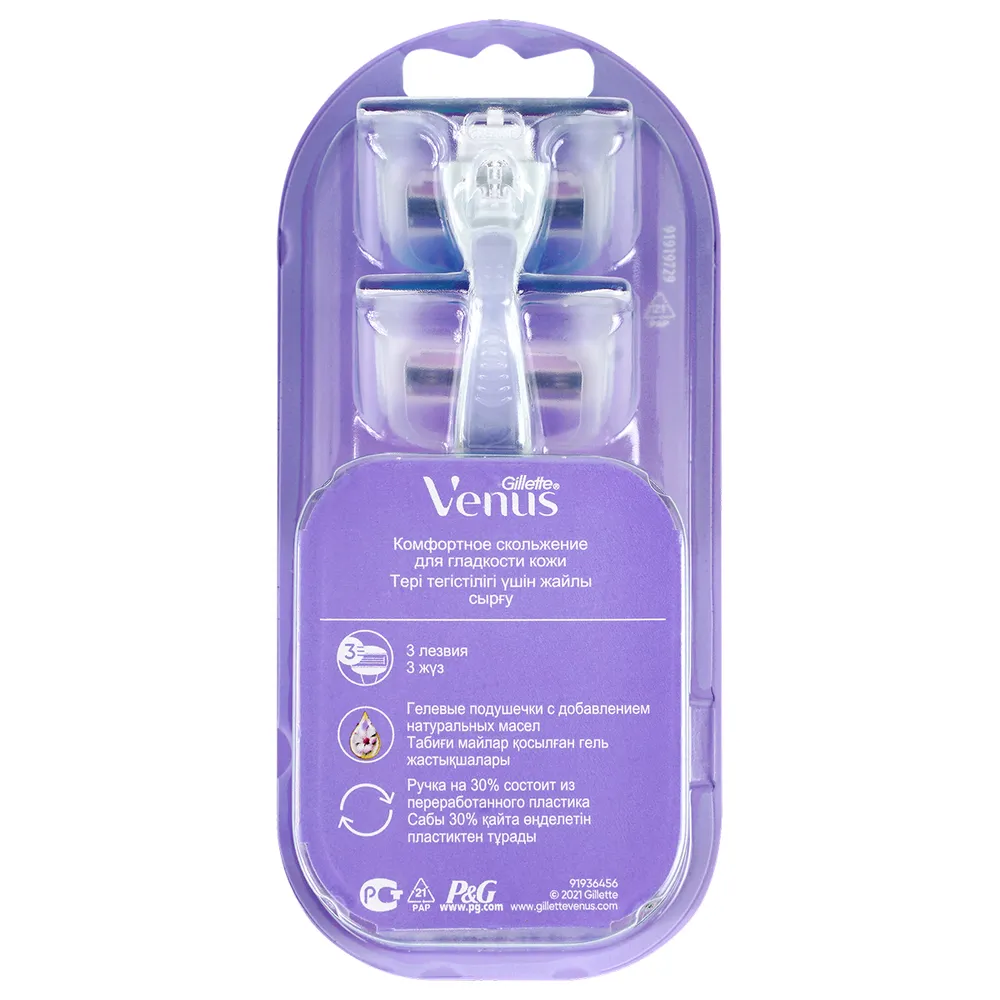Женская бритва Gillette Venus Breeze для комфортного скольжения. Благодаря трем повторяющим изгибы тела лезвиям и разглаживающим кожу защитным подушечкам вокруг лезвий бритва обеспечивают гладкое и чистое бритье одним движением. Преимущества: - Гелевые полоски над и под лезвиями активируются при контакте с водой, обеспечивая плавное скольжение при каждом движении; - Бритва с тремя повторяющими изгибы тела лезвиями для гладкого бритья; - Гелевые полоски бритвы смазывают кожу насыщенной пеной с маслом фрезии для защиты кожи от порезов, царапин и раздражения; - Благодаря эргономичной ручке бритву удобно держать в разных положениях; - Полоска-индикатор, меняят цвет, показывая, когда пора менять лезвия. - Гелевая ручка с мягкой зоной захвата обеспечивает невероятный контроль и не выскользнет даже в душе.