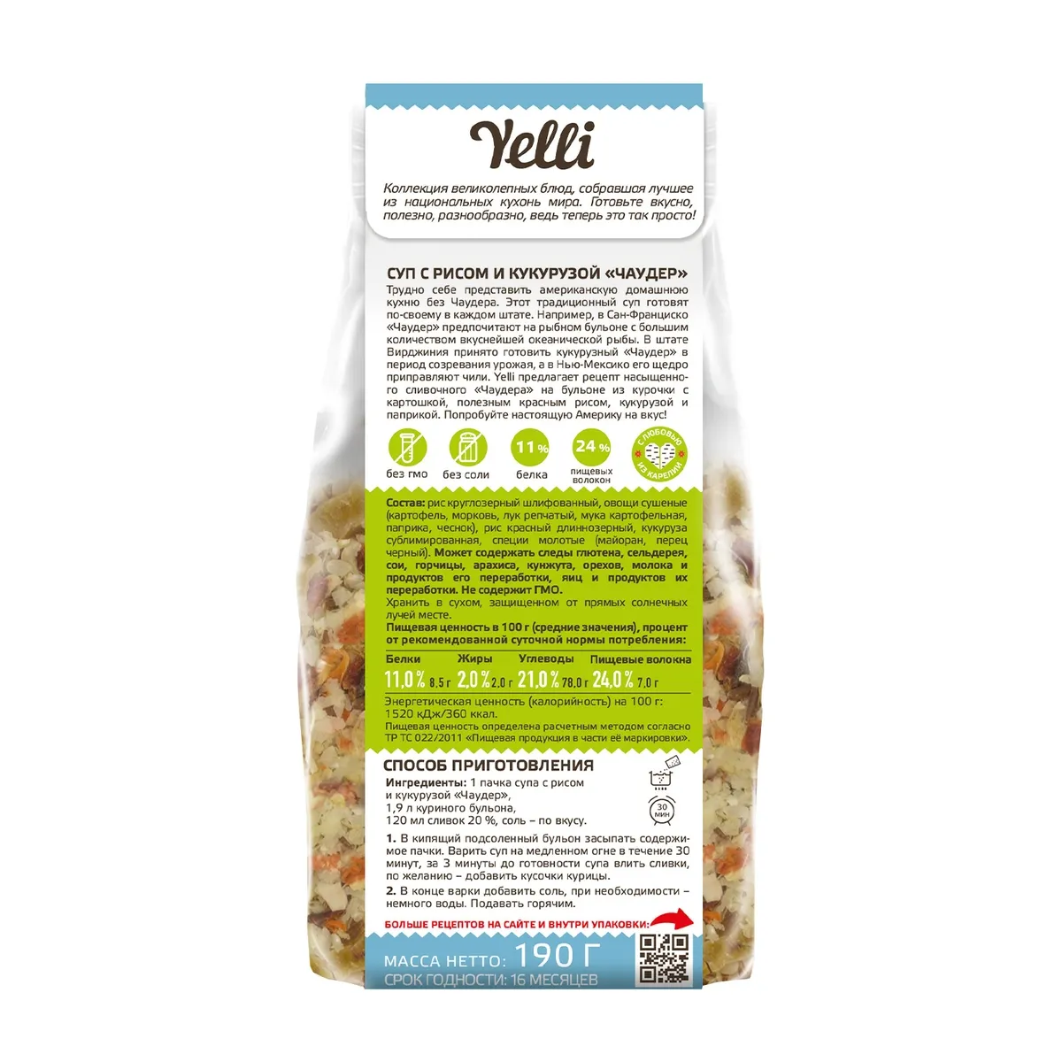 Трудно себе представить американскую домашнюю кухню без Чаудера. Этот традиционный суп готовят по-своему в каждом штате. Например, с Сан-Франциско Чаудер предпочитают на рыбном бульоне с большим кол-ом вкуснейшей океанской рыбы. В штате Вирджиния принято готовить кукурузны Чаудер в период созревания урожая, а в Нью-Мексико его щедро приправляют чили. Yelli предлагает рецепт насыщенного сливочного Чаудера на бульоне из курочки , с картошкой, полезным красным рисом, кукрузой и паприкой. Попробуйте настоящую Америку на вкус!