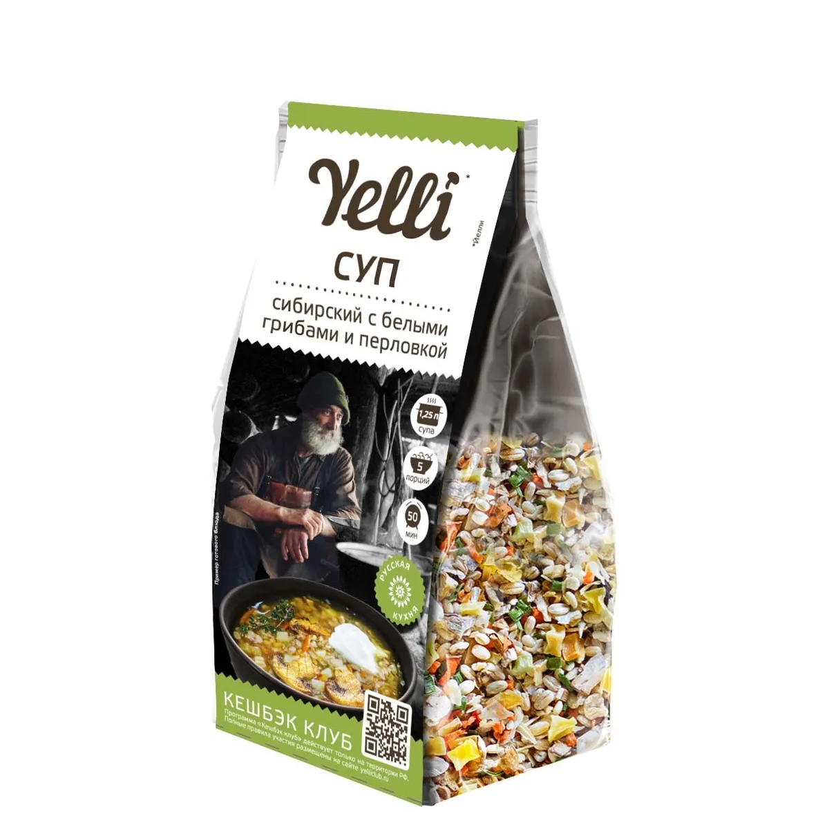 Перловая крупа, овощи и зелень сушеные (картофель, лук репчатый, морковь, лук зеленый, укроп, чеснок дробленый), грибы белые сушеные, шампиньоны сушеные, кориандр молотый, перец черный молотый. Содержит глютен. Может содержать следы сельдерея, сои, горчицы, арахиса, кунжута, орехов, молока и продуктов его переработки, яиц и продуктов их переработки. Не содержит ГМО.