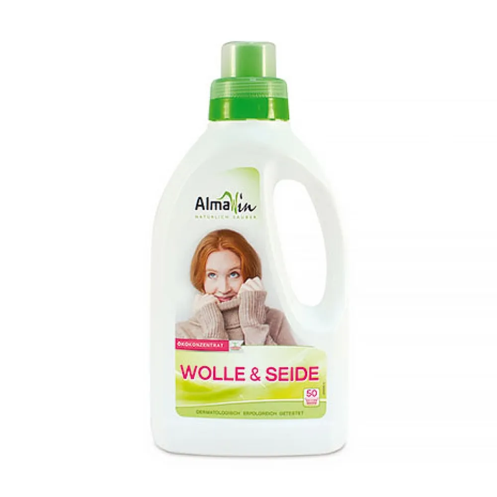 Способность жидких средств для стирки проникать в ткань гораздо выше, чем у порошковых. Если речь идёт об уходе за шёлковым постельным бельём или кашемировом свитере, о сыпучих веществах и речи быть не может. Одной упаковки экологического концентрата AlmaWin для стирки деликатных вещей хватит на 50 машинных и 75 ручных стирок, если учесть, что стирать дорогие вещи приходится не часто, можно хорошо сэкономить. Органические компоненты не оказывают агрессивного воздействия на тонкий качественный текстиль, растительные тензиды даже при 30°C снижают межфазное натяжение и позволяют частицам грязи легко отделиться от волокон и не прилипнуть снова. У этих ПАВ есть ещё одно важное преимущество, они снимают заряд статического электричества. За счёт сбалансированного состава средство для деликатных вещей Альмавин обладает свойством мягкого пятновыводителя, в списке ингредиентов есть молочная кислота, в небольших количествах она не представляет никакого вреда для кожи рук и деталей автоматической машинки, однако выполняет функцию фермента, прекрасно справляющегося с трудновыводимыми загрязнениями. Жидкость для стирки заливается непосредственно в барабан, на 2 килограмма потребуется всего половины колпачка. После полного цикла дополнительное полоскание не требуется